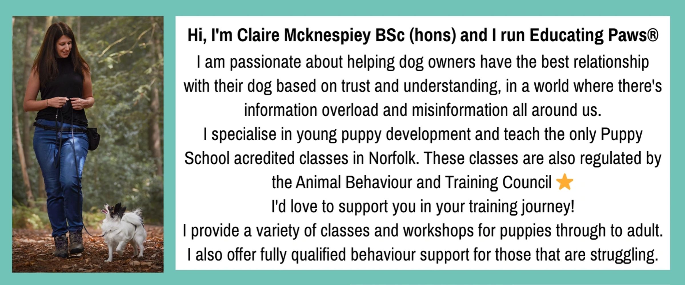 Norfolk, UK WhatsApp, Text or Call 07999982803 claire@educatingpaws.co.uk